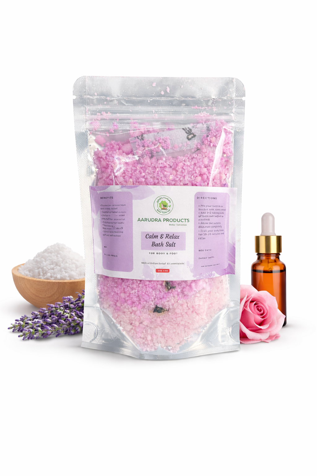 Experience deep relaxation with our Calm & Relax Bath Salt, thoughtfully crafted with pure Epsom salt infused with Lavender and Rose essential oils. This calming blend helps ease muscle tension, reduce stress, and create a spa-like bathing experience at home.
