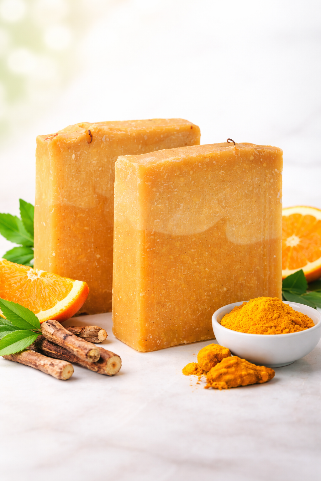 Enriched with Orange Peel extract, Wild Turmeric, and Licorice, this detan soap helps reduce tanning, brighten dull skin, and promote a natural glow.