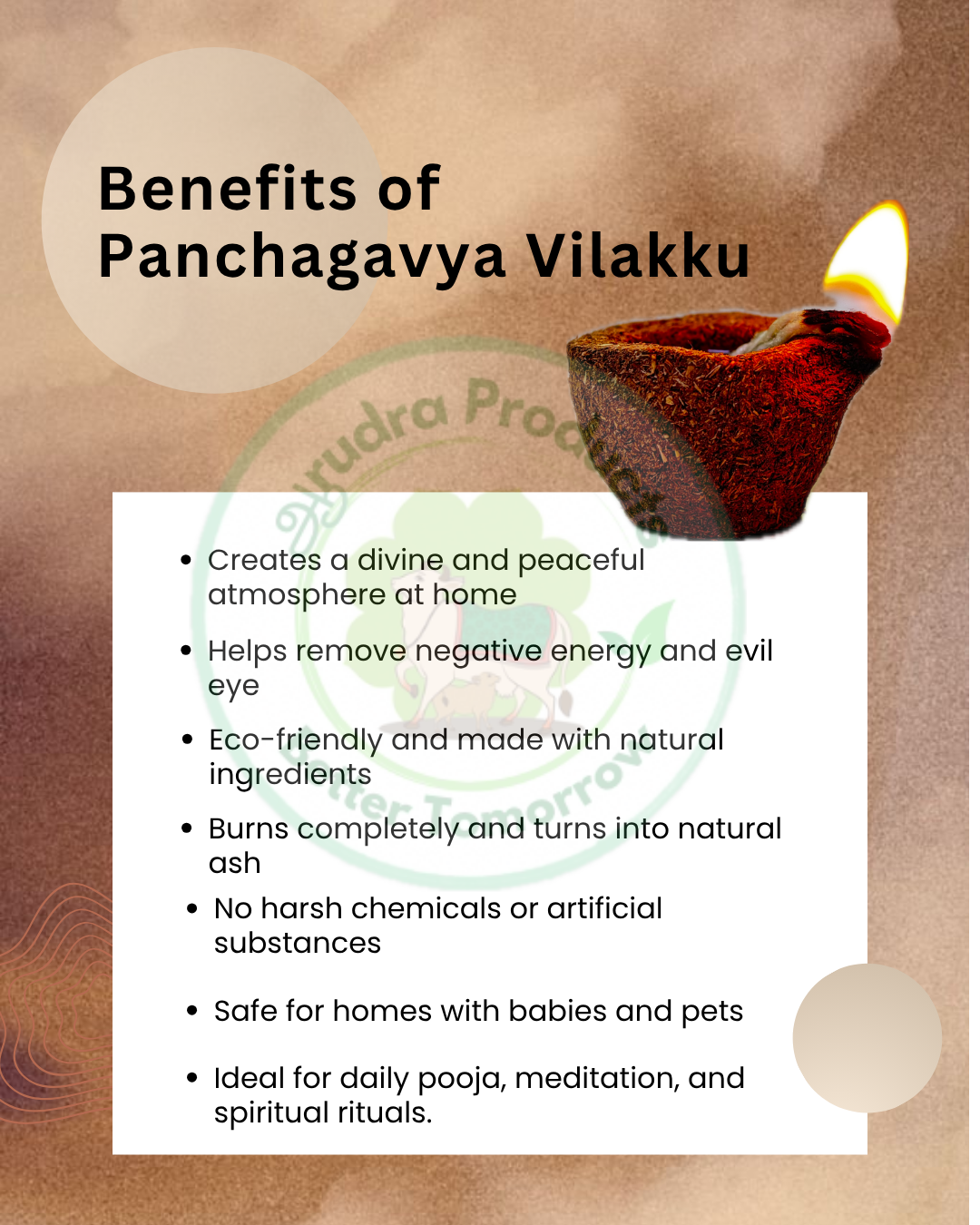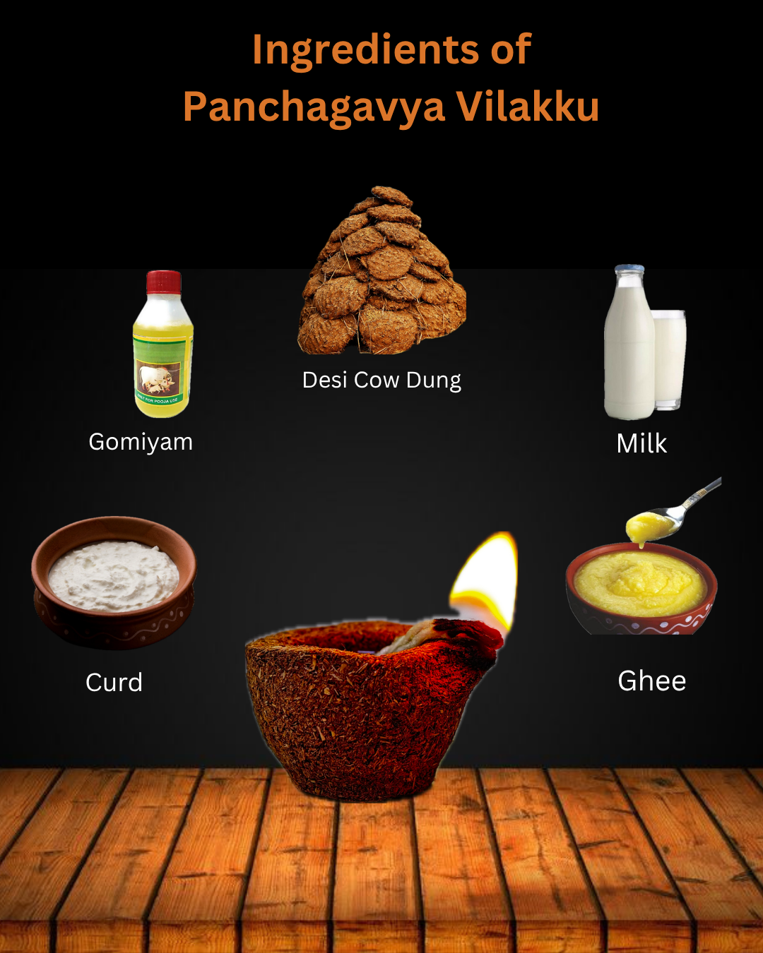 Panchagavya Vilakku Made from 5 sacred Desi cow by-products – Desi Cow dung, Milk, Curd, Ghee and Gomiyam.