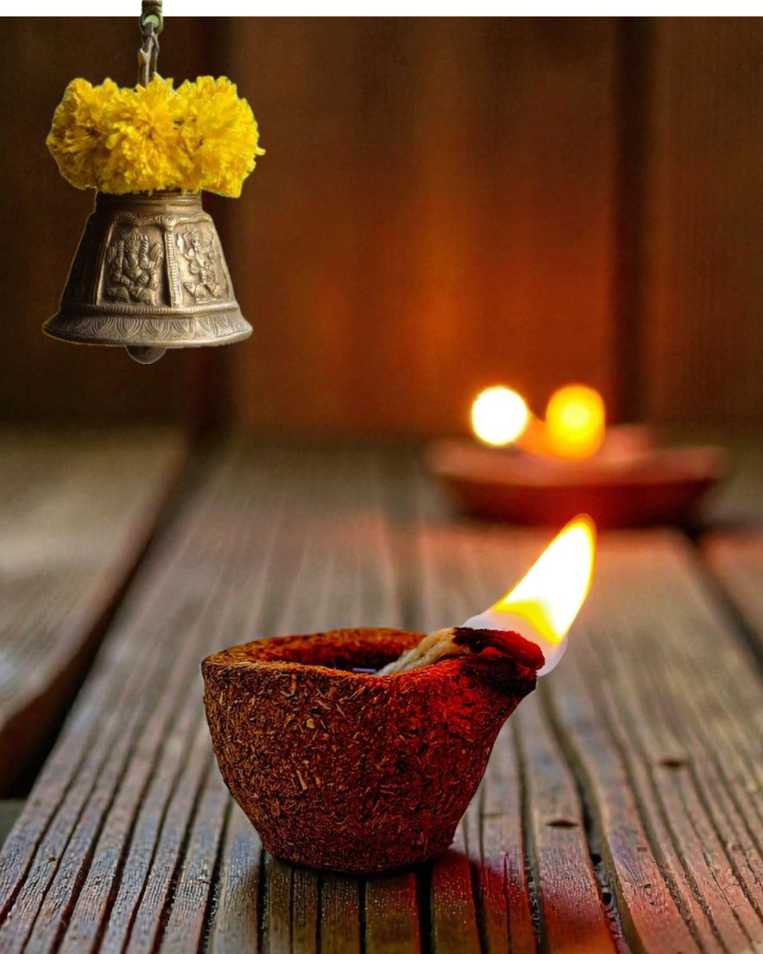 Bring home the power of tradition with Panchagavya Vilakku, a sacred cow dung diya made from the five auspicious by-products of the Desi cow – cow dung, milk, curd, ghee, and gomutra.
